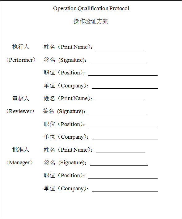 本次操作驗證(Operation Qualification)文件填寫目的是為了規范
